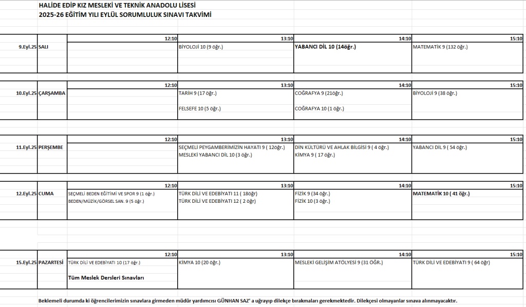 2025 HAZİRAN DÖNEMİ SORUMLULUK SINAV TAKVİMİ. 10 HAZİRANDA...